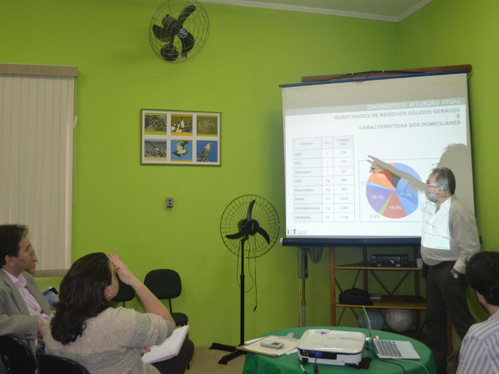 Foram apresentadas as quantidades de resíduos sólidos gerados por cada município, além do custo de manejo, bem como as características dos resíduos domiciliares. Também foi exibido o resultado da análise do comitê de coordenação sobre as alternativas tecnológicas para o cumprimento da legislação. Foram discutidas as necessidades de escala de atuação, tecnologias adequadas e capacidade de gestão para a implantação deste novo sistema de manejo dos resíduos sólidos. Também foi apresentado um esboço de como serão os ECOPONTOS, os ECOPONTOS/ATT e também o modelo do ECOPARQUE, que será implantado em Amparo.