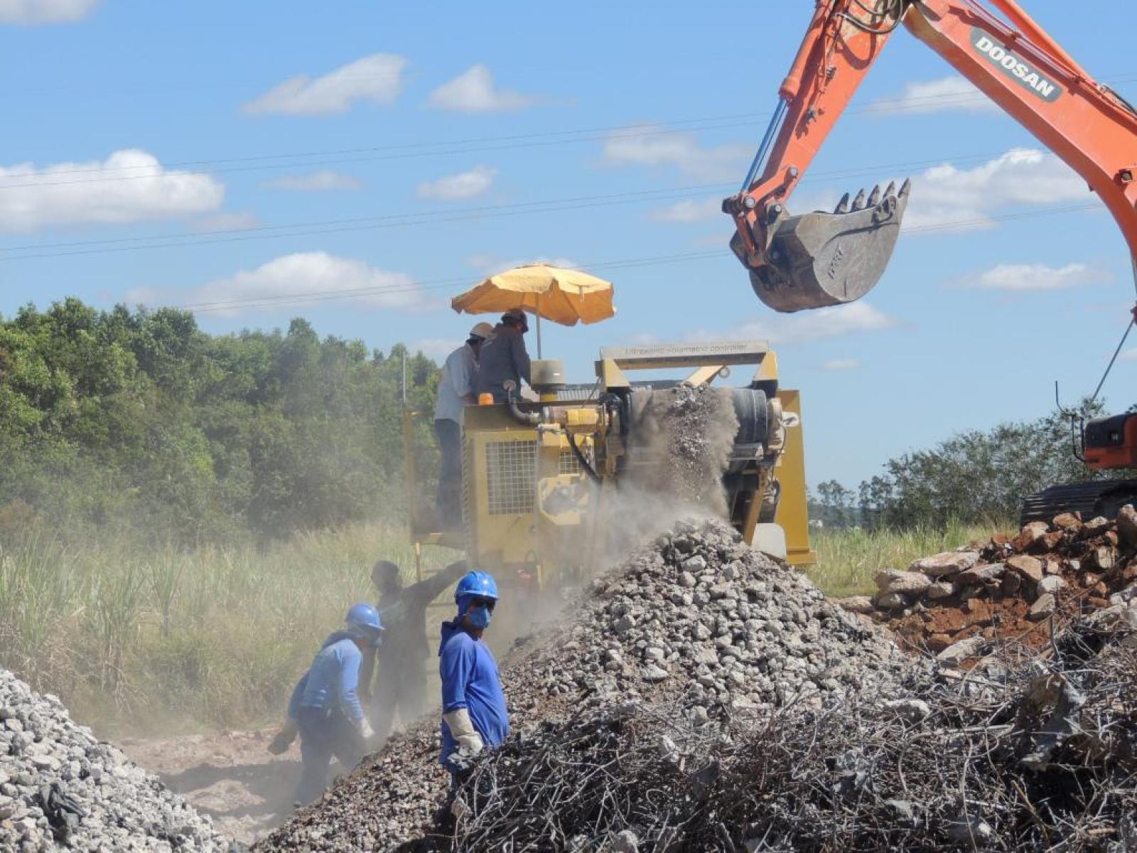 Na sexta-feira 06/09/2013 foi iniciado o beneficiamento dos resíduos da construção civil da cidade de Santo Antônio de Posse. Com o beneficiamento, será possível utilizá-los no próprio município dando assim o destino correto. O material tratado pode ser aproveitado de várias formas como: areia, pedra brita (3 granulometrias), utilizando como contrapiso ou no fabrico de bloquetes e cascalho para aproveitamento nas estradas rurais.