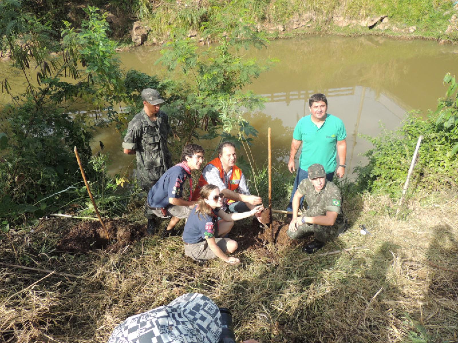 Ao final da caminhada foi realizado o plantio de 80 mudas nas margens do Rio Camanducaia.