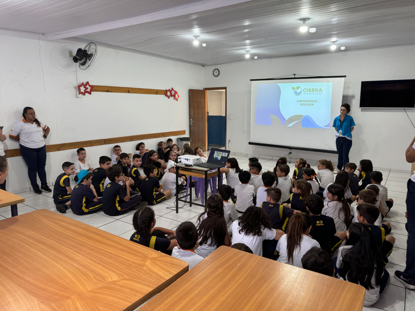 Na última sexta-feira, 6 de setembro, o Consórcio Intermunicipal de Saneamento Básico da Região do Circuito das Águas (CISBRA) realizou duas palestras no Colégio Integral, em Pinhalzinho, com o objetivo de conscientizar as crianças sobre a importância da reciclagem. As palestras contaram com a participação de 34 crianças da Educação Infantil e 63 do Ensino Fundamental I, que tiveram a oportunidade de aprender sobre o impacto positivo da reciclagem no cuidado com o meio ambiente e a necessidade de dar o destino correto aos resíduos.