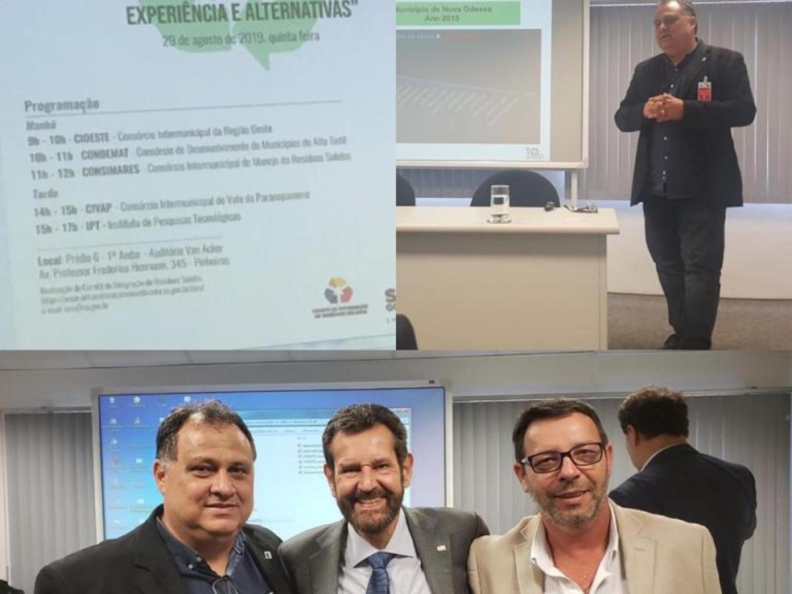 Também se apresentaram o Consórcio de Desenvolvimento dos Municipios do Alto Tietê (Condemat), o Consórcio Intermunicipal de Manejo de Resíduos Sólidos (Consimares), o Consórico Intermunicpal do Vale do Paranapanema (Civap) além do Centro de Tecnologias Geoambientais do Instituto de Pesquisas Tecnológicas (IPT).